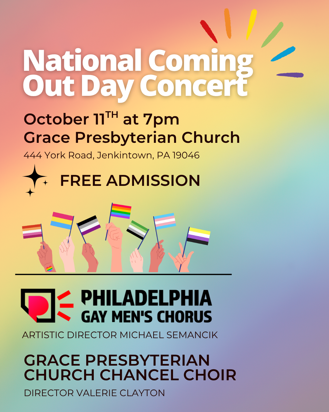 National Coming Out Day Concert: Saturday October 11, 7:00 pm