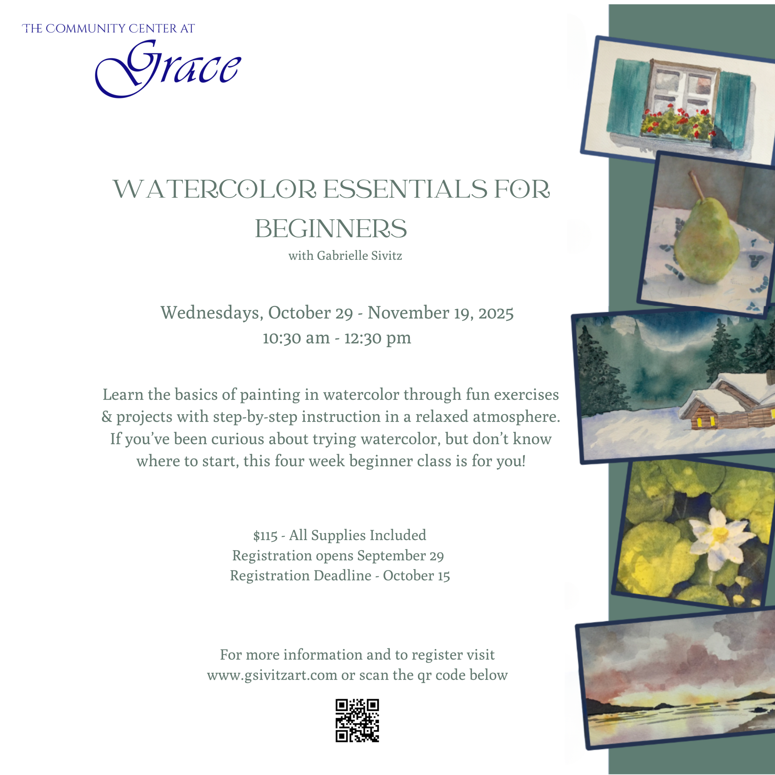 Watercolor Essentials for Beginners: Wednesdays, October 29 – November 19, 10:30 am – 12:30 pm